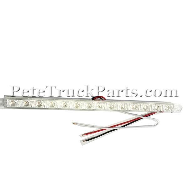 14 LED 12″ P/T/C Strip Light Amber LED w/ Clear Lens Available w/ 3 Wires Mounting Holes Approximately 11 7/16″ Apart