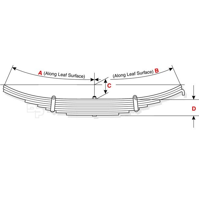 9 Leaf Trailer Spring – Width = 3 ; (A) 21-3/8 ; (B) 21-3/8 ; © 2-1/2 ; (D) 4-1/2
